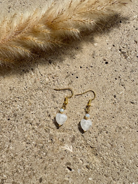 Zandzucht vangt het moment waarop het zand warm aanvoelt en de stilte spreekt. De hartvormige steentjes in helder wit symboliseren puurheid en rust, terwijl de gouden details een vleugje zonlicht toevoegen aan elke beweging.